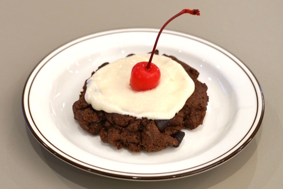 ココア生地ベースにチョコチップがたっぷりと入ったクッキーにバニラホイップをトッピング!