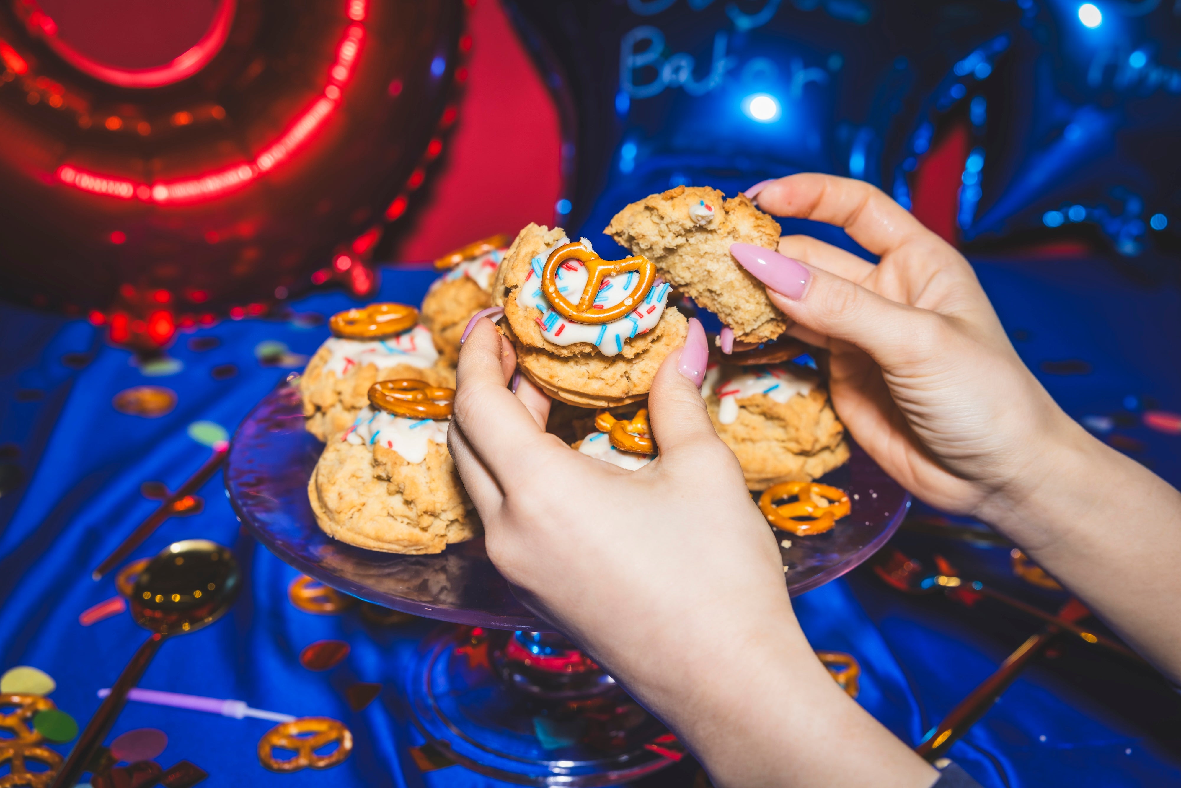 ひと口ごとに広がるミルキーなココナッツの風味の生地にプレッツェルとスプリンクルスプレーでデコレーション🥨🎶