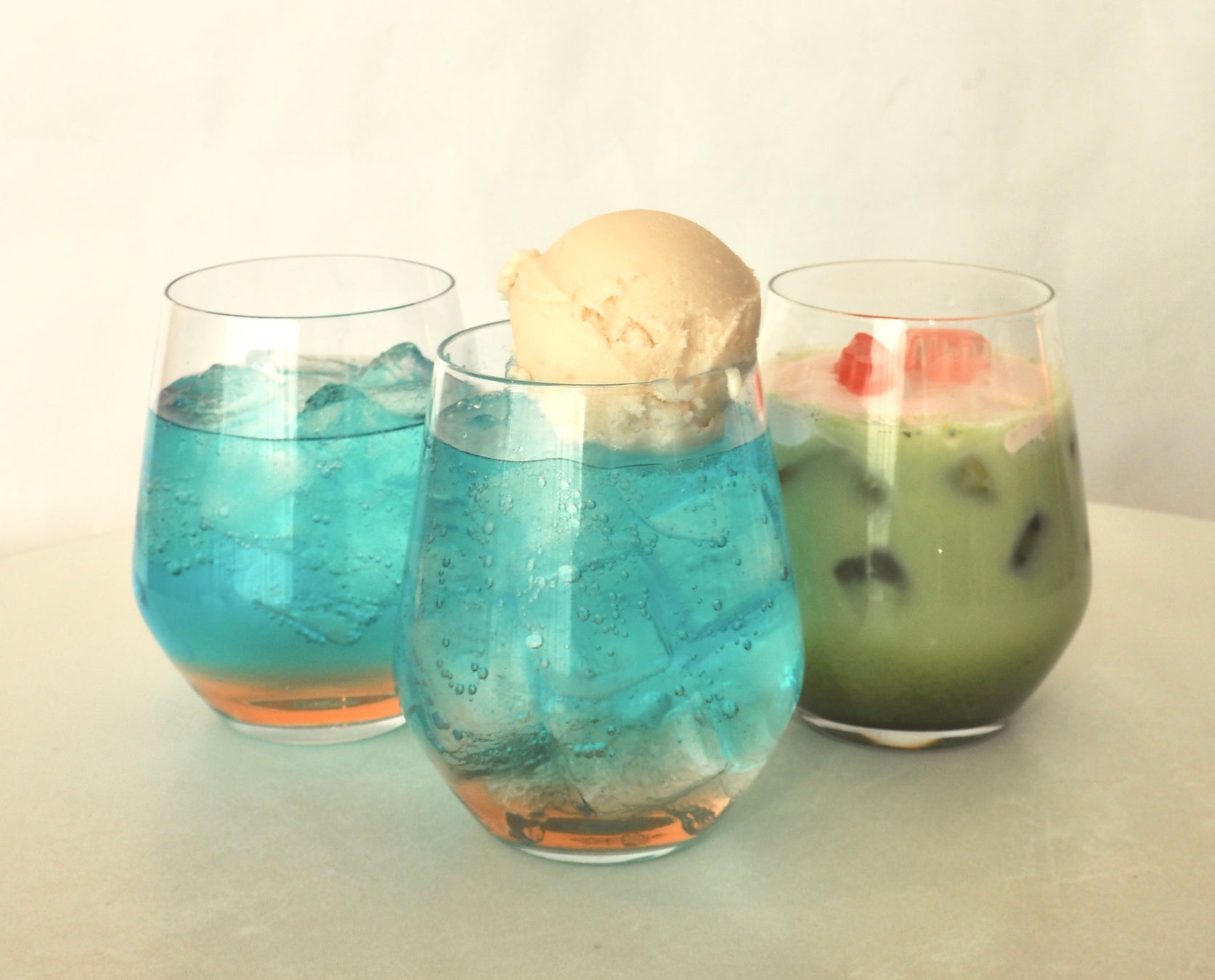 春の訪れを感じられる2種類のスペシャルドリンク。アイスクリームやホイップクリームと混ぜると色や味が変わる、、、?!