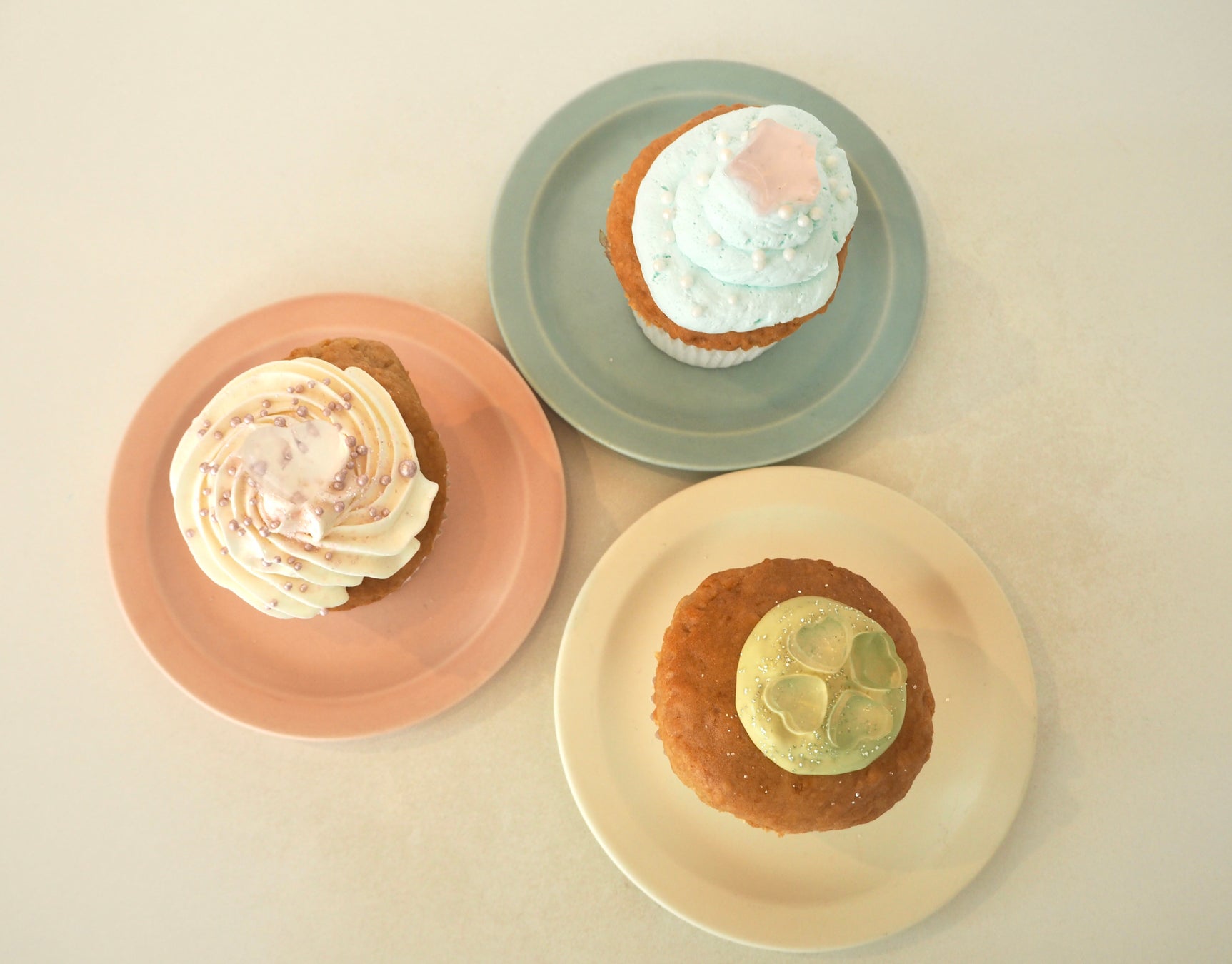 ふわふわ、しっとり食感にグレードアップしたカップケーキに様々なフレーバーのホイップクリームやジャムをトッピング。クリアな見た目の寒天ゼリーがポイント!