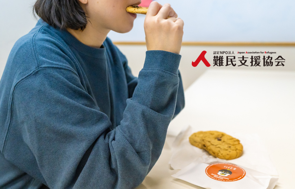 ※写真は難民支援協会事務所相談室にてクッキーをお召し上がりになられている様子。(モデルによる撮影)