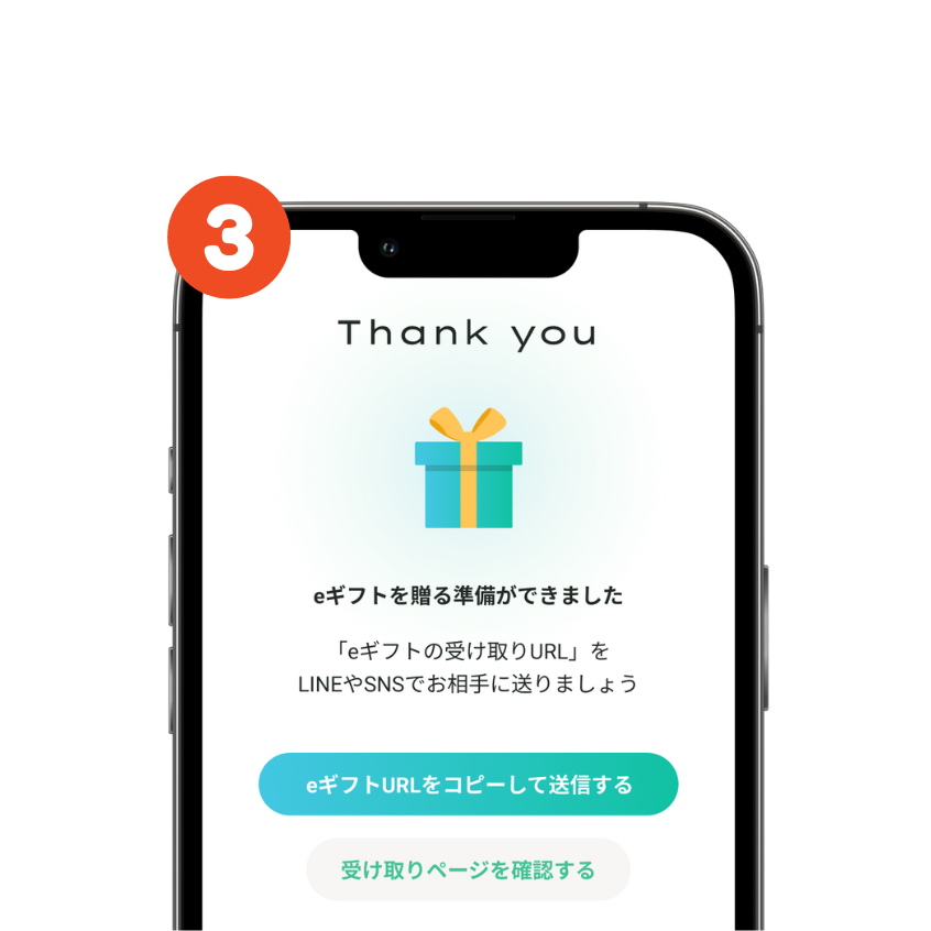 購入が完了すると、eギフトの受け取りURLが発行されます。完了画面でURLのコピーや、受け取りページを確認することが可能です。